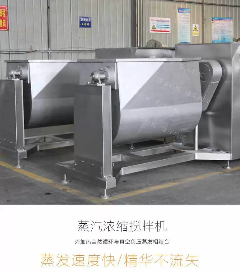物料在(zài)低溫80攝氏度濃縮,色澤好,保持原味,使原物料的營養不被破壞,物料加熱均勻。真空炒製可降低炒製溫度,避免過度受熱引起顏色(sè)及口味的劣化,保持原料原來的色(sè)、香、味。提高炒製效率,降低能耗,縮短炒製(zhì)時間。溫度自動控製,自動(dòng)翻蓋、自動出料。