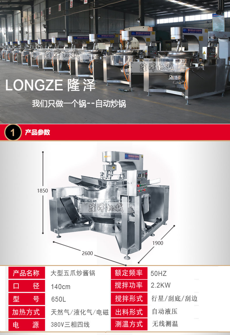 公司主營:方便麵調味料生產設備;炸醬鍋;油炸鍋;夾層鍋;蒸汽鍋;導熱(rè)油鍋;火鍋底料自動(dòng)化炒鍋;粉料混合機;幹炒機;製醬鍋;煮醬鍋;炒醬鍋;電磁炒鍋(guō)