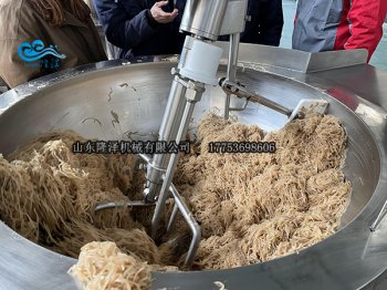 臥式橫軸攪拌炒鍋 采用臥式U型鍋(guō)體,鍋體內(nèi)部可抽真空,360度全方(fāng)位攪拌(bàn)均勻,不粘鍋不(bú)糊鍋,主要用在(zài)火鍋底料、月餅(bǐng)餡料、高粘度(dù)物料、果蓉、果醬、年(nián)糕、辣椒醬、食堂炒菜、...
